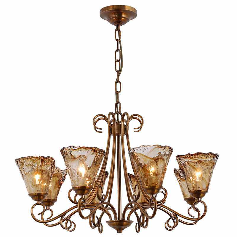 美式全铜简约枝型乡村客厅灯复古法式别墅餐厅玻璃吊灯