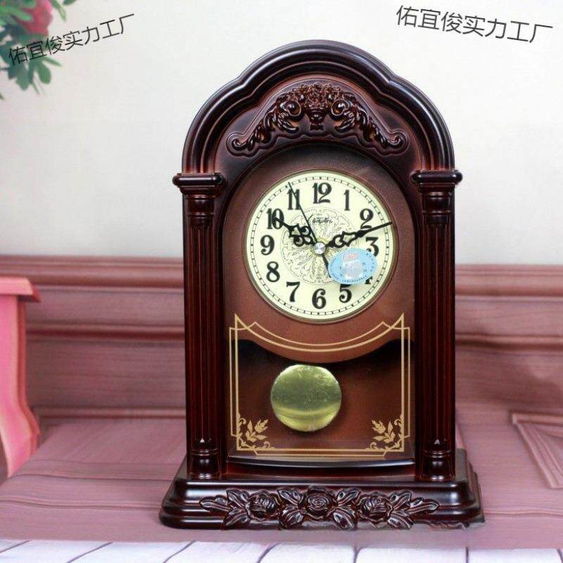 欧式复古座钟客厅创意时钟台式卧室静音摆件时尚大号台钟塑料闹钟