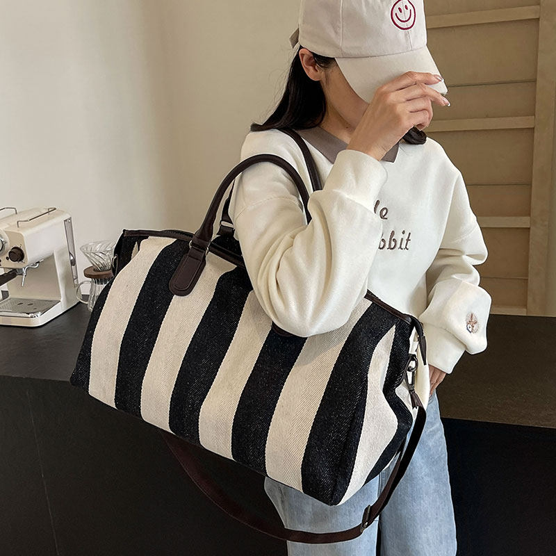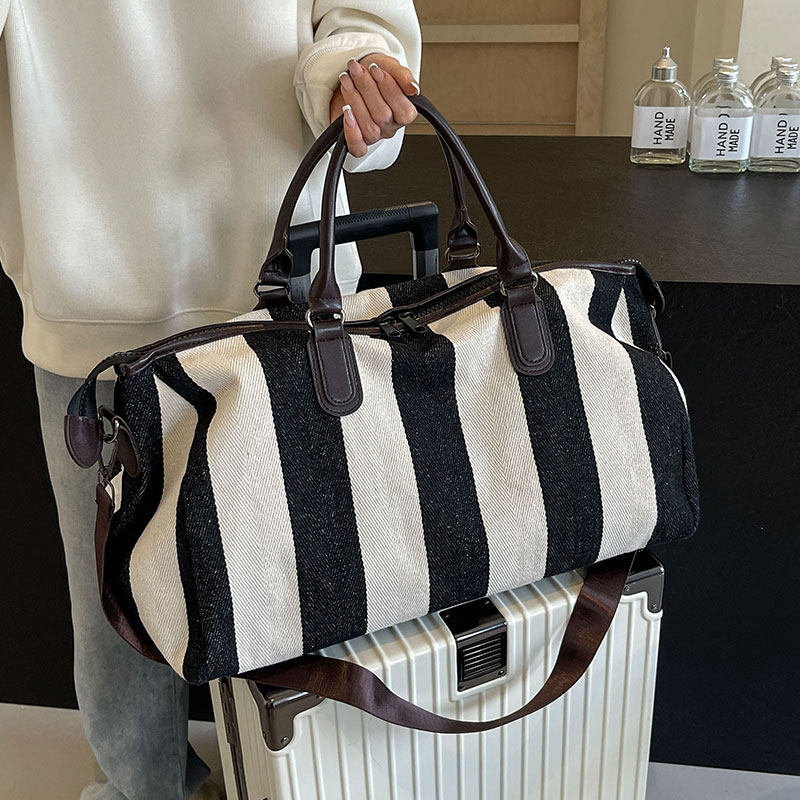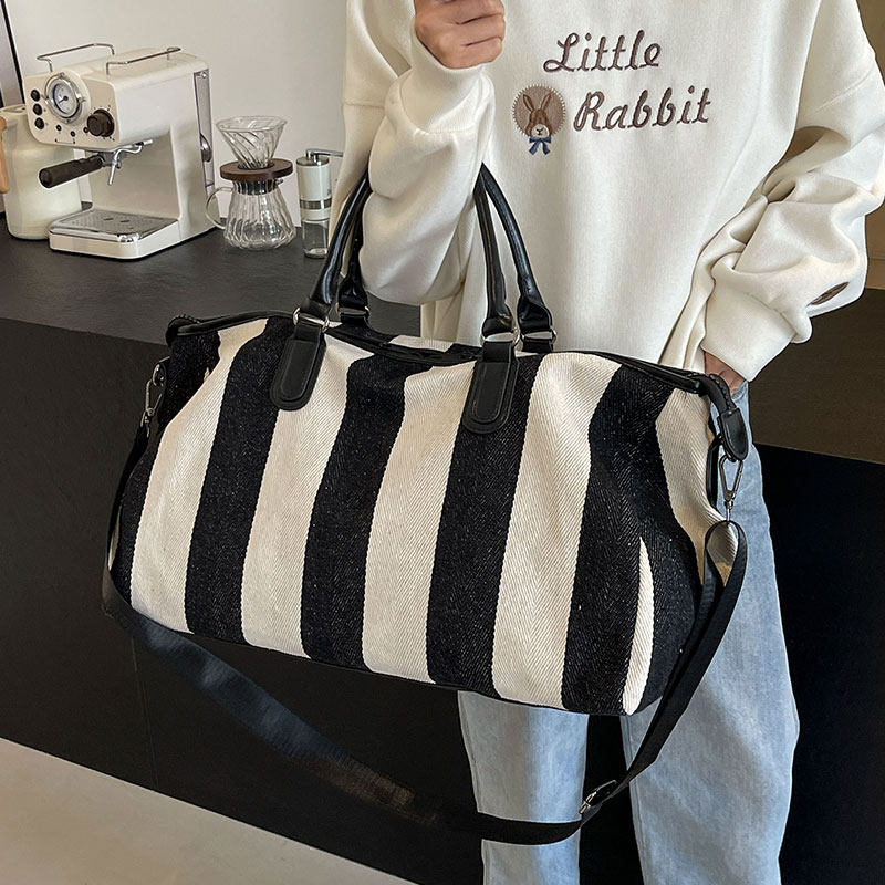 斑马纹帆布旅行包2024年新款健身包女大容量