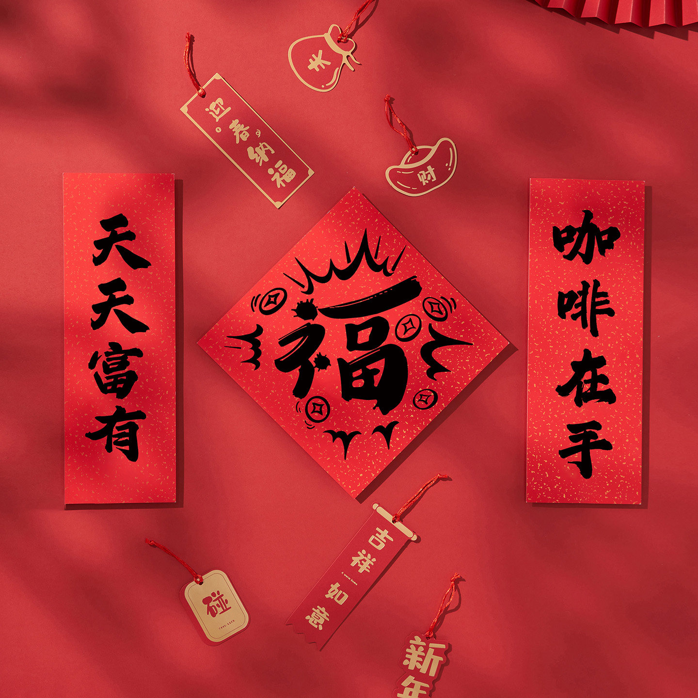 2026马年咖啡系列拍照小对联创意春联家居氛围感拍摄红色主题摄影