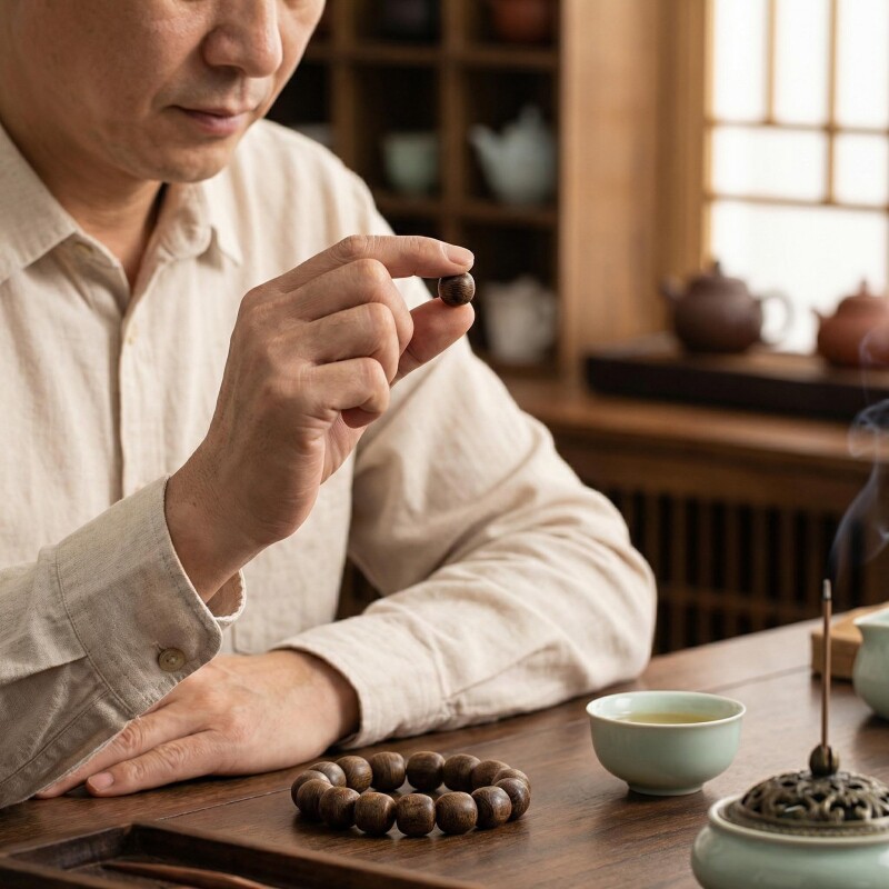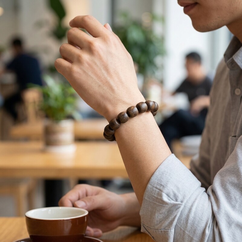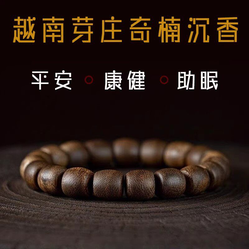 越南芽庄奇楠沉香手串男士桶珠沉水级佛珠手串念珠手持手链饰品