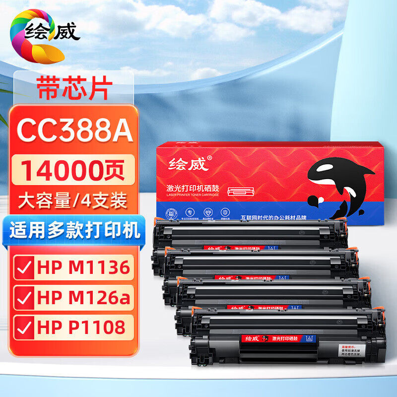 绘威适用惠普CC388A易加粉硒鼓M1136 P1108 M126a M126nw 88A硒鼓