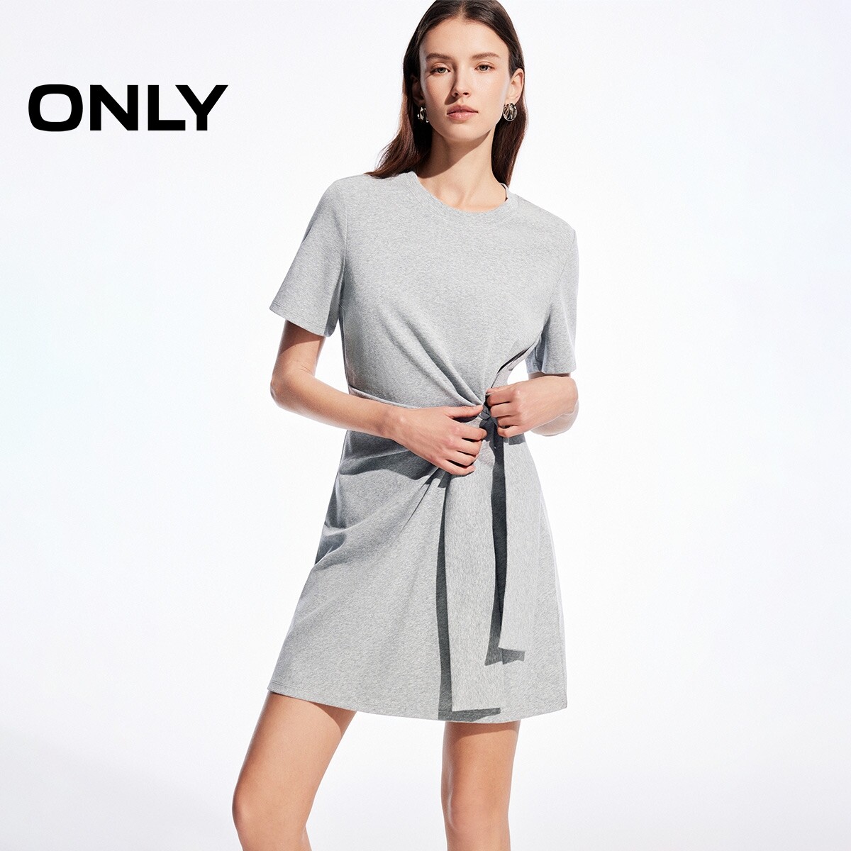 ONLY2026春季新款气质立体扭结纯色裙子短袖收腰正肩短裙连衣裙女
