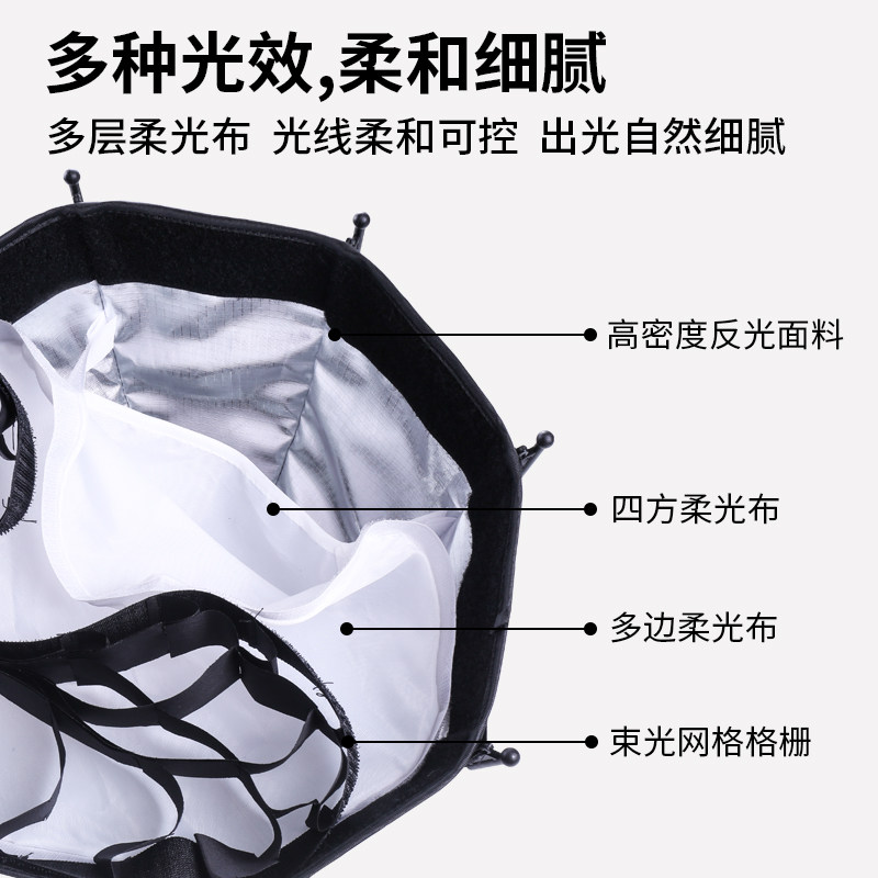 快拆柔光箱30CM深口抛物线快装八角柔光罩MINI保荣卡口深抛轻便补光灯配件视频拍摄直播影棚附件带格栅柔光布