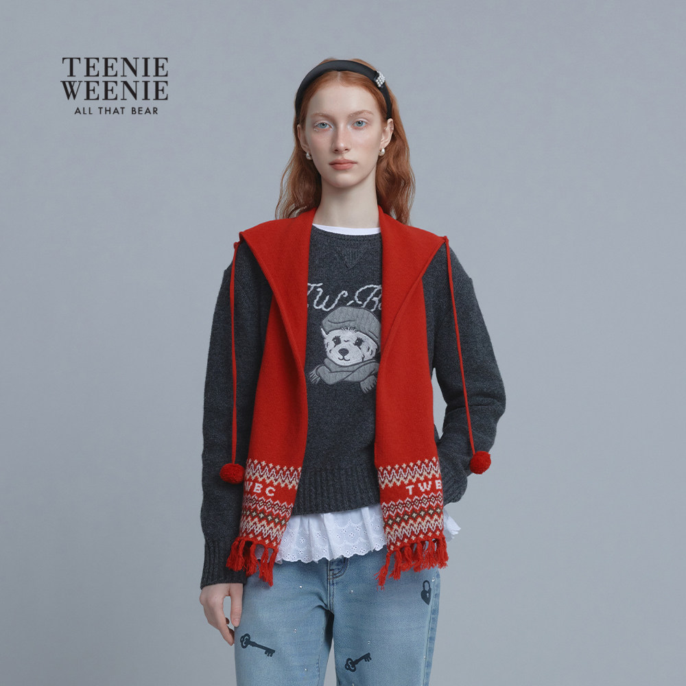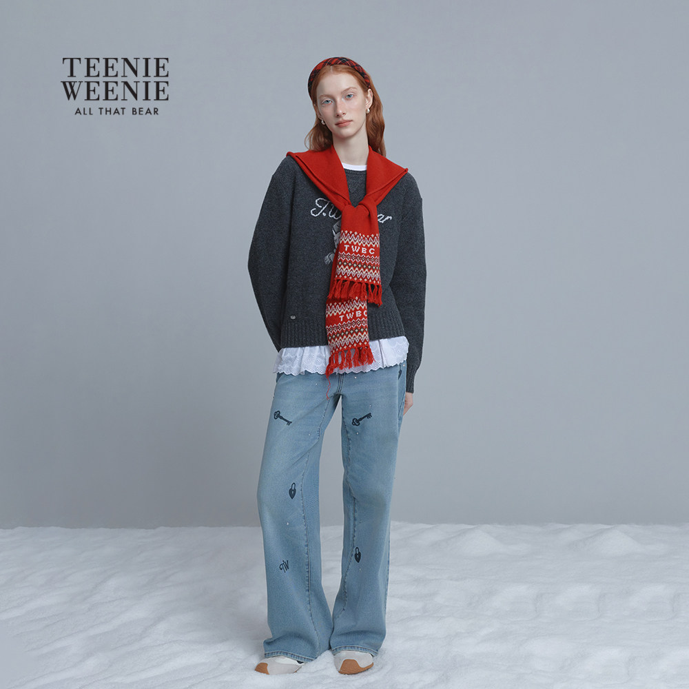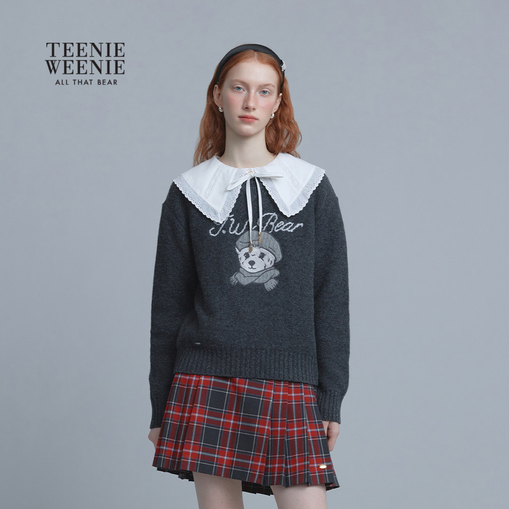 TeenieWeenie小熊女装毛针织衫秋冬休闲日常大熊刺绣圆领套头毛衣