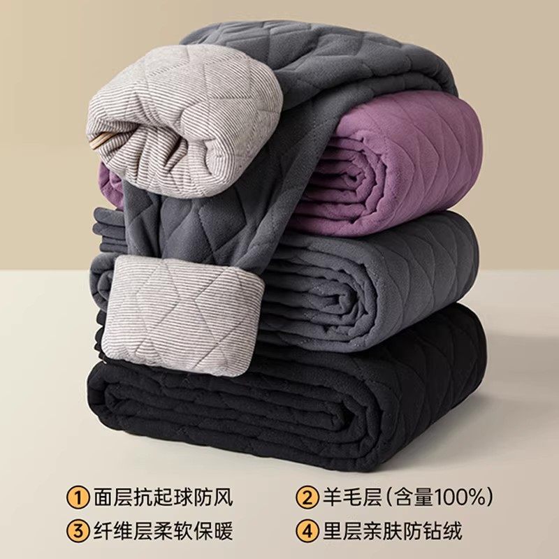 羊毛蚕丝秋裤女加厚加绒德无痕发热高腰保暖裤女羊毛棉裤打底裤冬