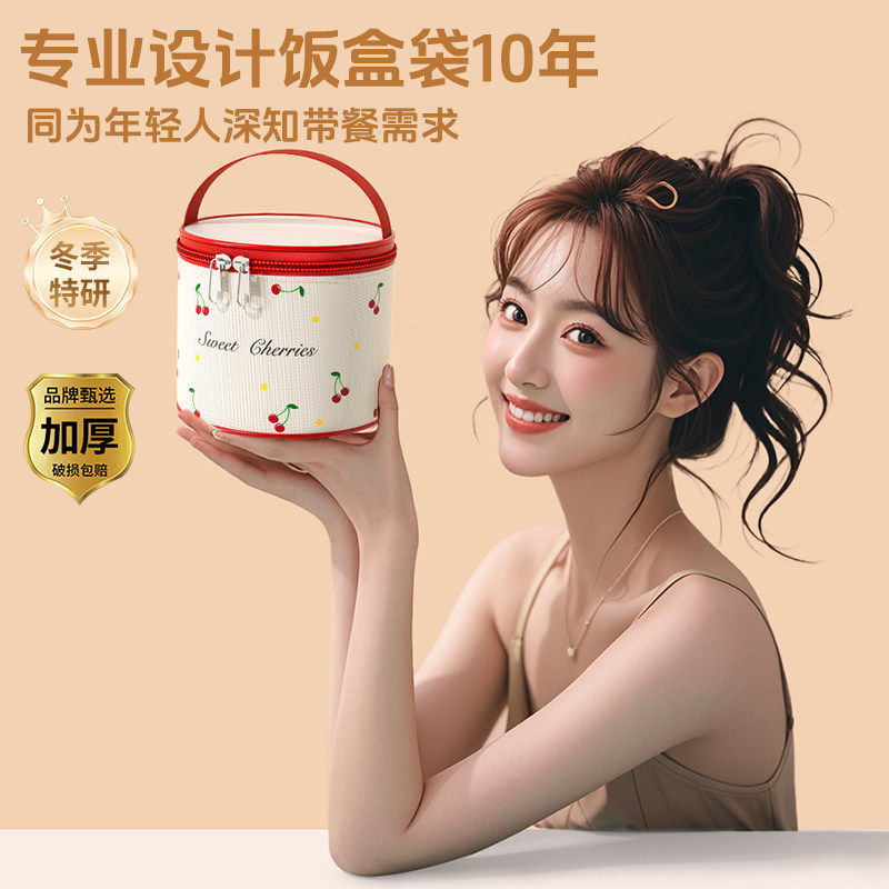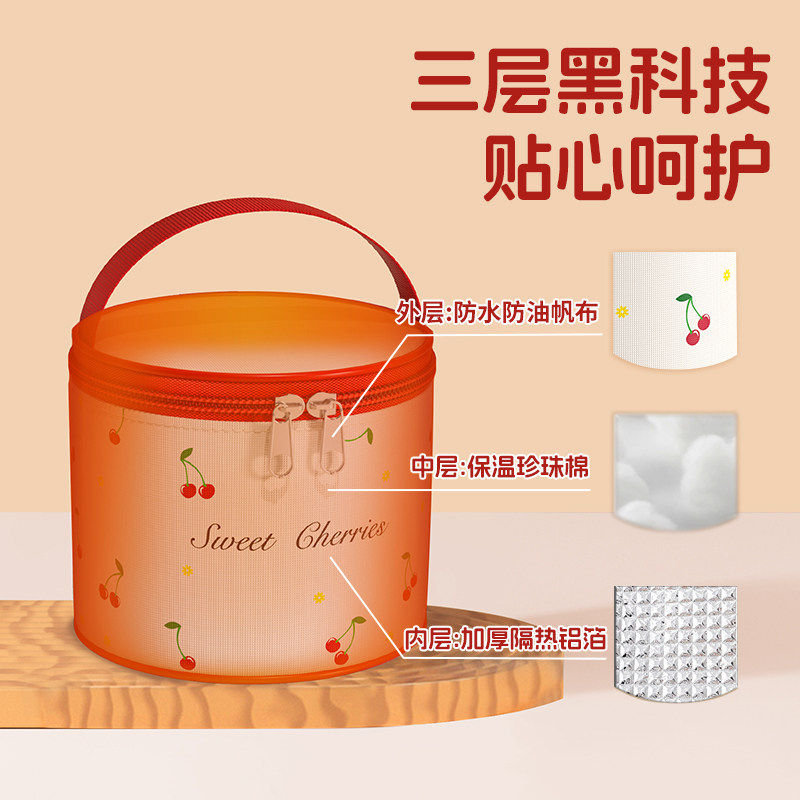 长效早餐保温袋小号迷你圆形饭盒手提袋子加厚铝箔便当包餐包圆筒