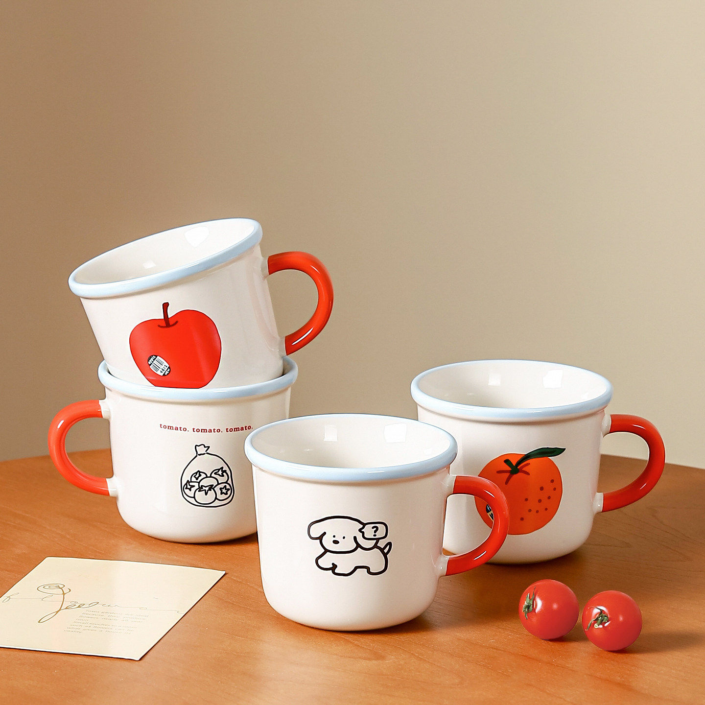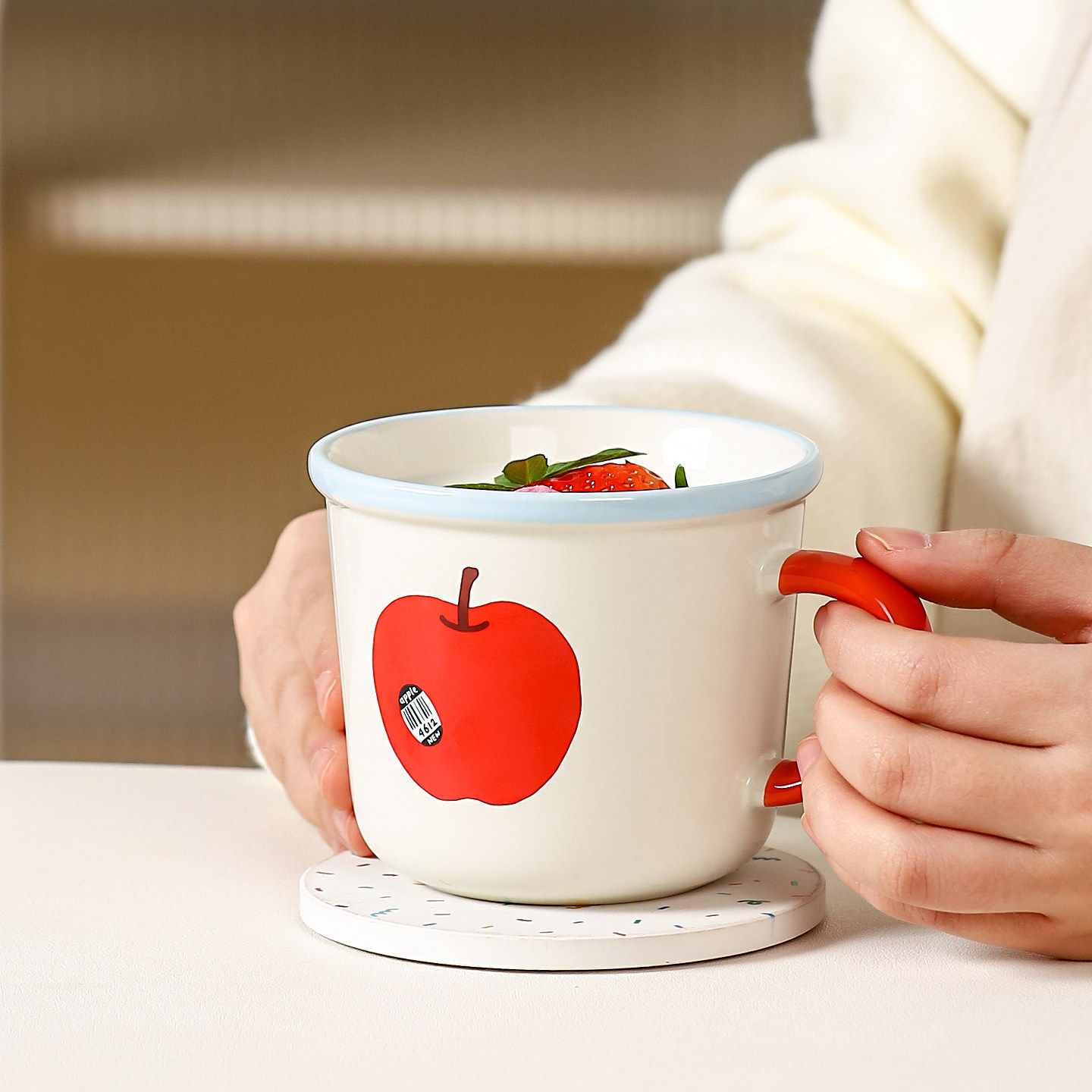 原创小众红苹果咖啡杯简约手绘陶瓷杯复古翻口马克杯水杯情侣礼物
