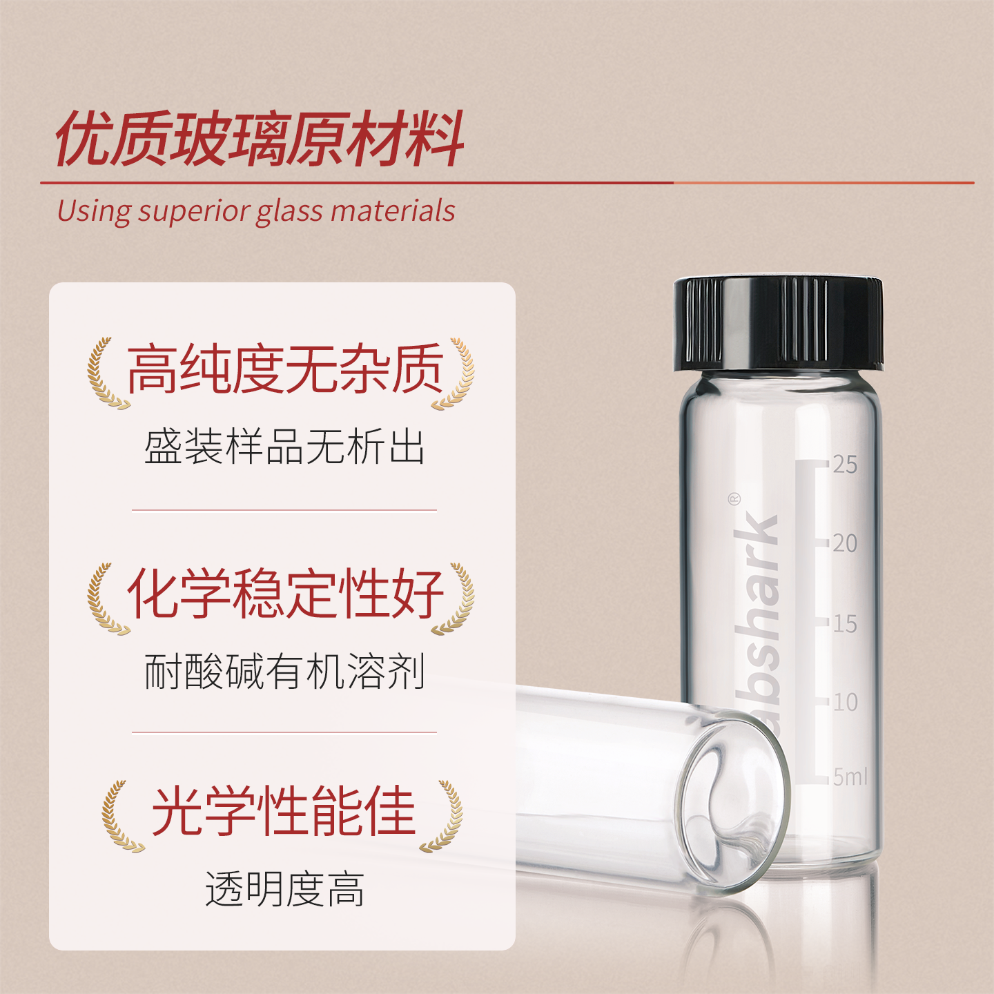 Labshark玻璃样品瓶西林瓶实验室玻璃瓶透明棕色4/5/10/20/30/40/50mL进样小玻璃瓶化学试剂粉末样品分装科研