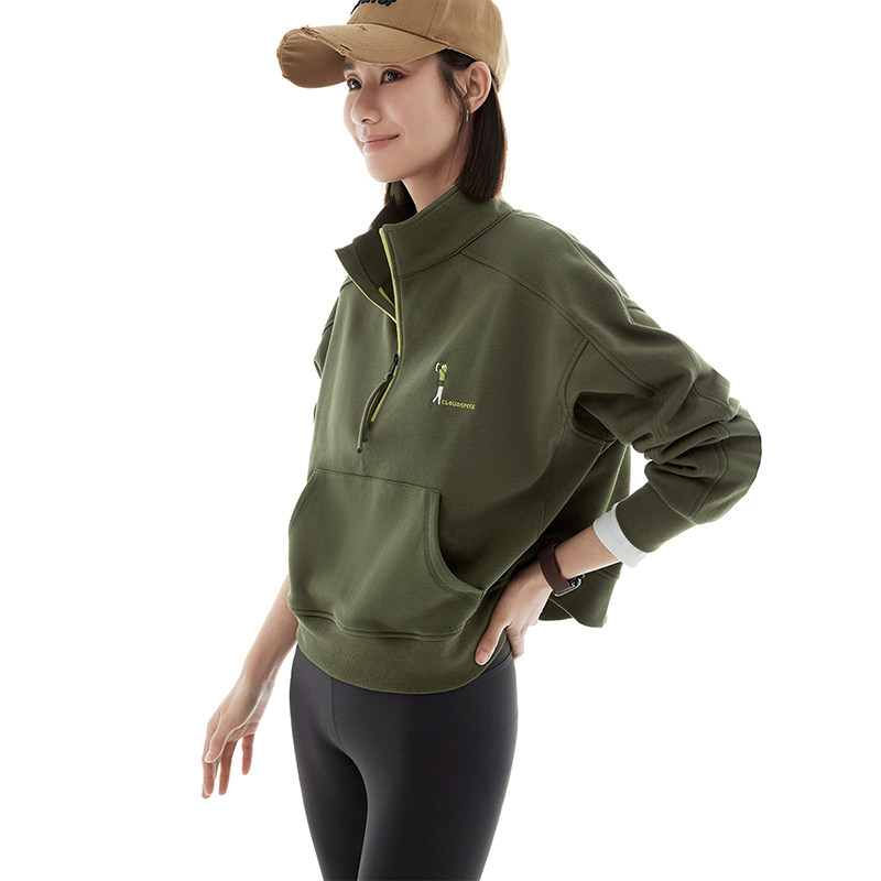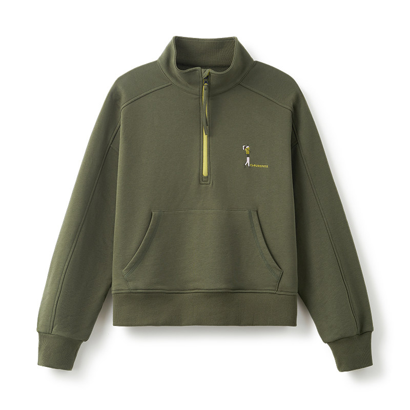 CLOUDSPACE【青苔卫衣】撞色刺绣半拉链插肩袖上衣春装长袖套头衫