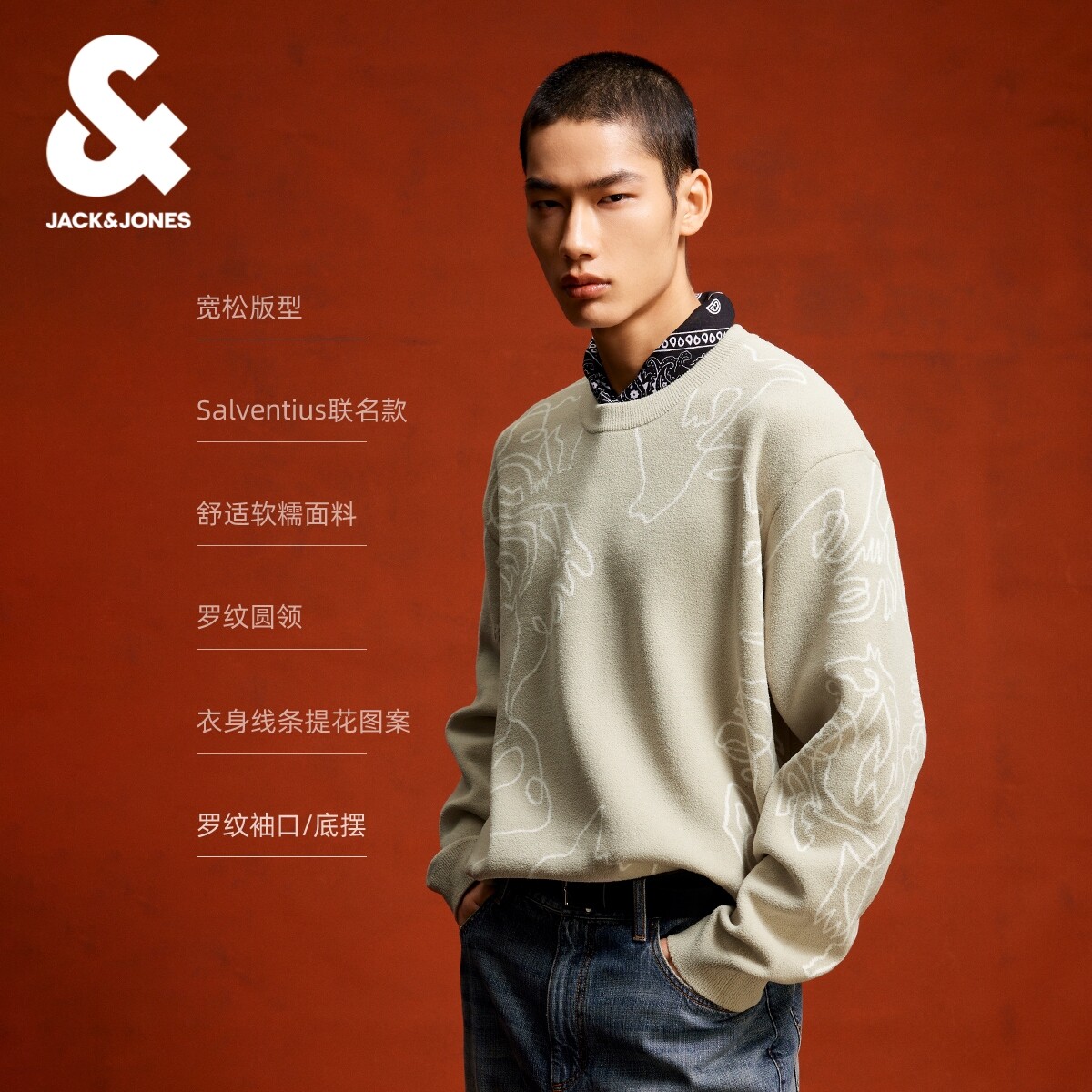 [红运黑马毛衣]杰克琼斯Salventius联名男装宽松新年本命年针织衫