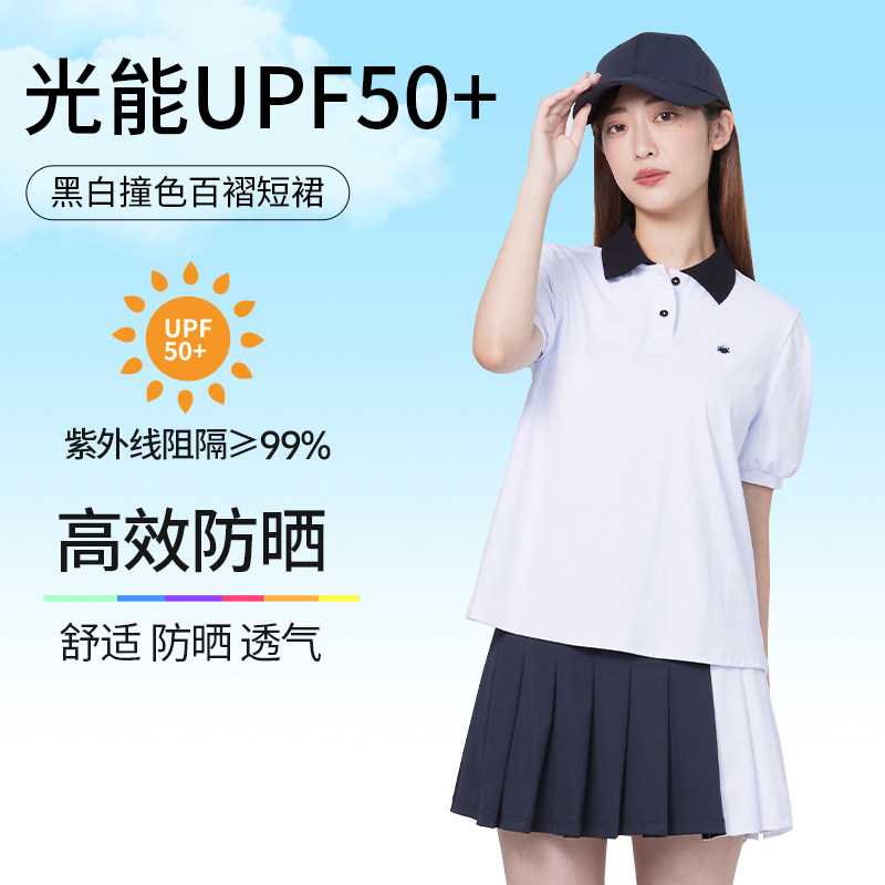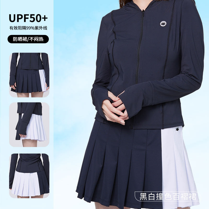 HOII/后益2024新款明星同款hosea户外防晒黑白撞色百褶短裙半身裙