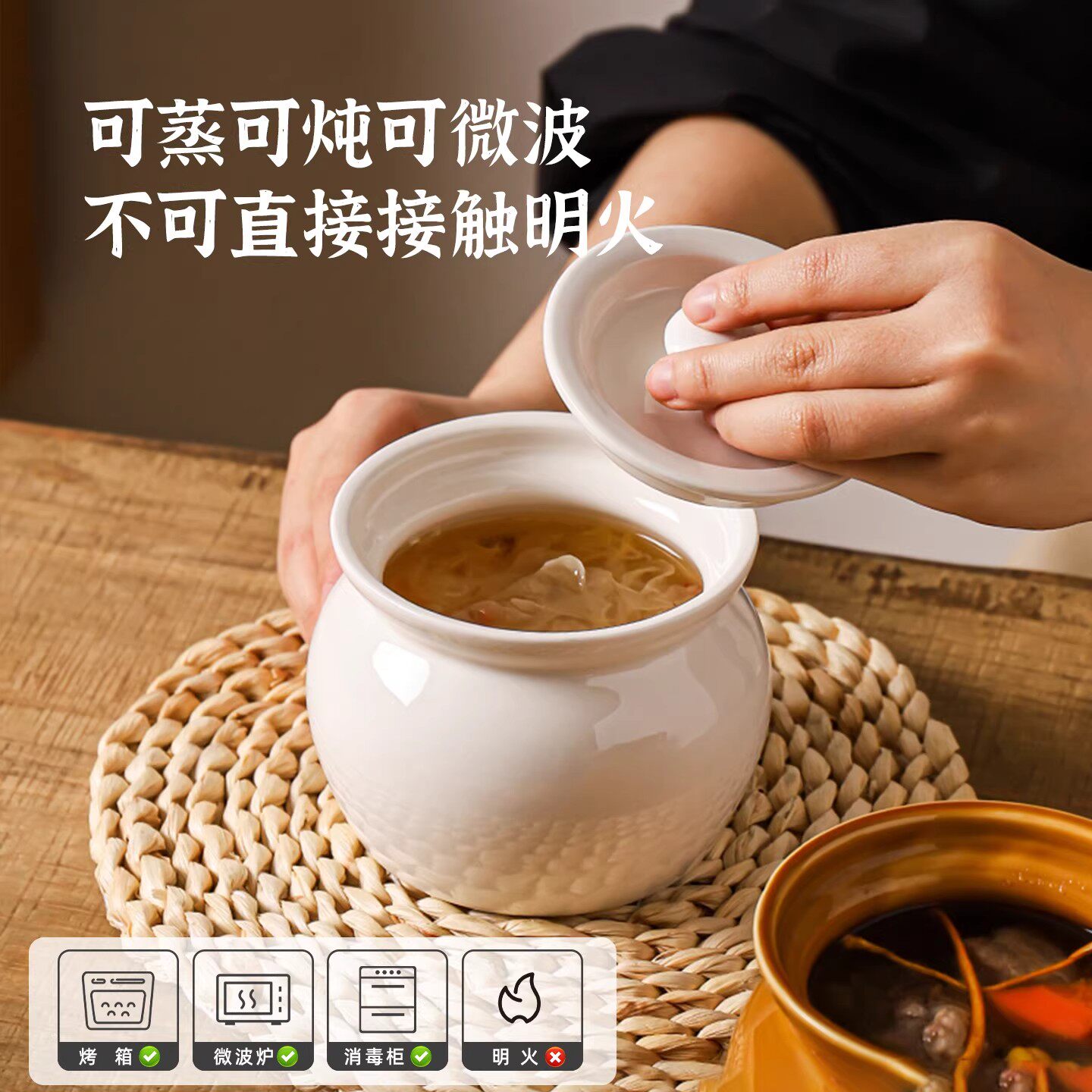 瓦罐炖盅隔水炖一人食蒸蛋炖炖燕窝带盖汤罐蒸蛋羹罐陶瓷汤盅煲汤
