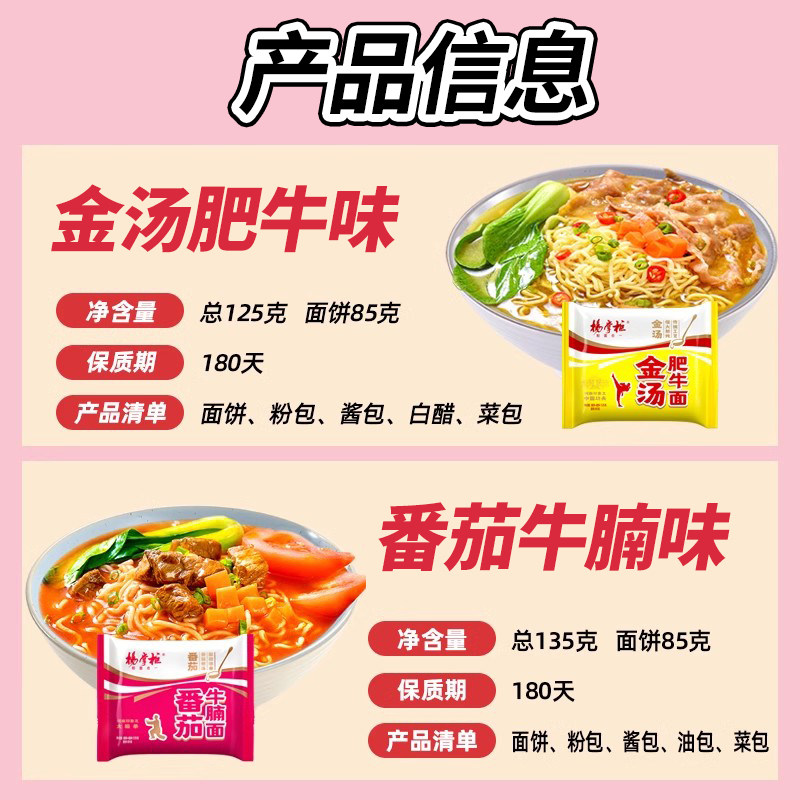 杨掌柜金汤肥牛面袋装速食泡面番茄牛腩方便面冲泡免煮宿舍夜宵
