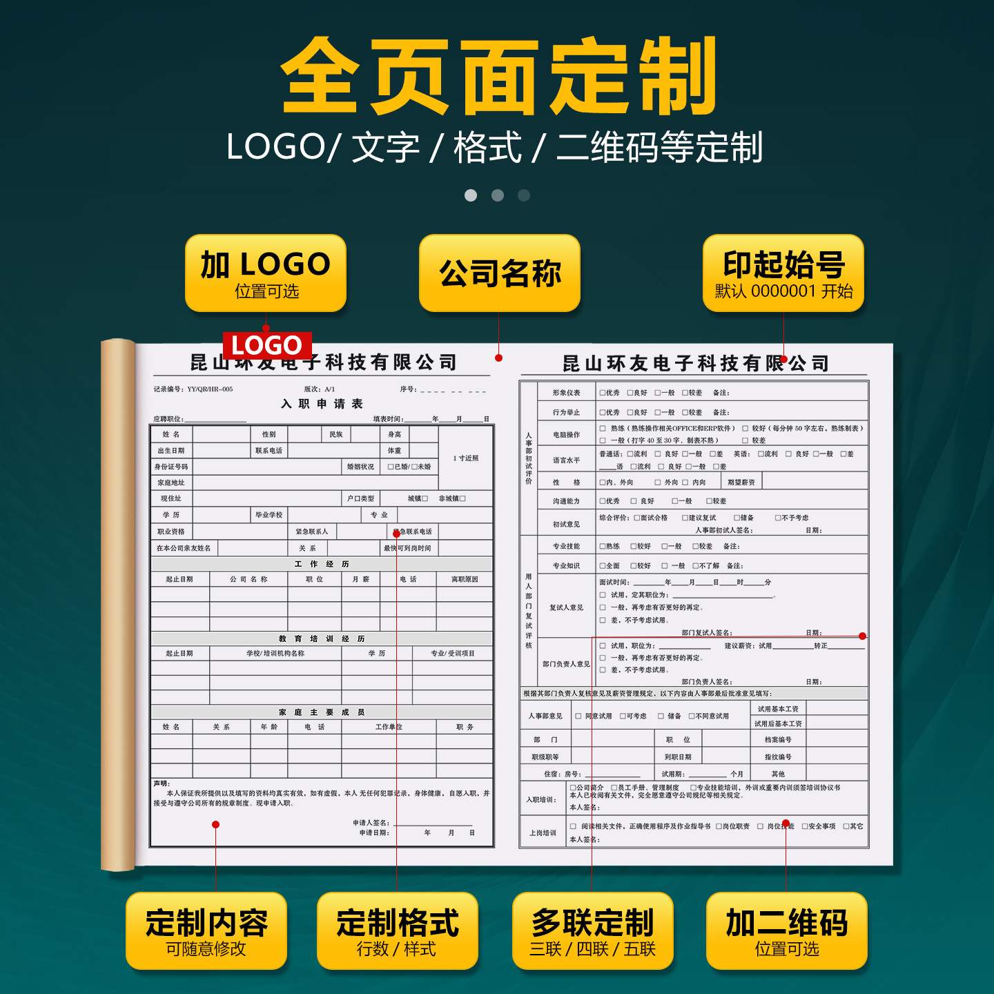 【面试登记表】定制人事招聘入职求职申请表公司员工个人信息履历表工厂招工应聘简历表职工离职辞职报告单据