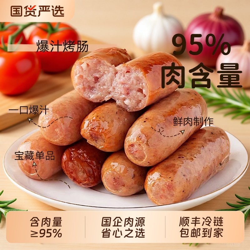 【199元任选3份】尊乐香肠烤肠爆汁纯肉肠芝士蜜汁早餐肠速食火锅