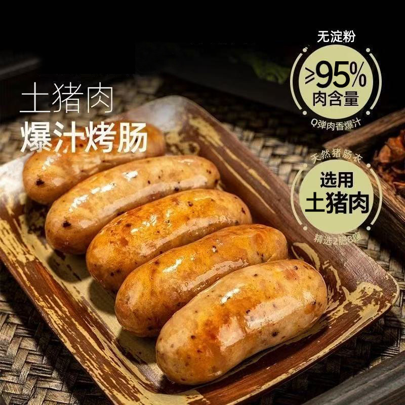 【烈儿宝贝直播间】雄丰山地黑猪肉爆汁烤肠5盒40根肉肠香肠热狗