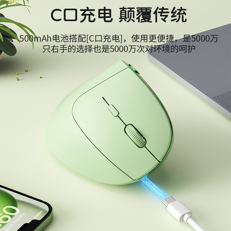 多彩m618mini静音无线蓝牙双模人体工学usb充电办公垂直鼠标