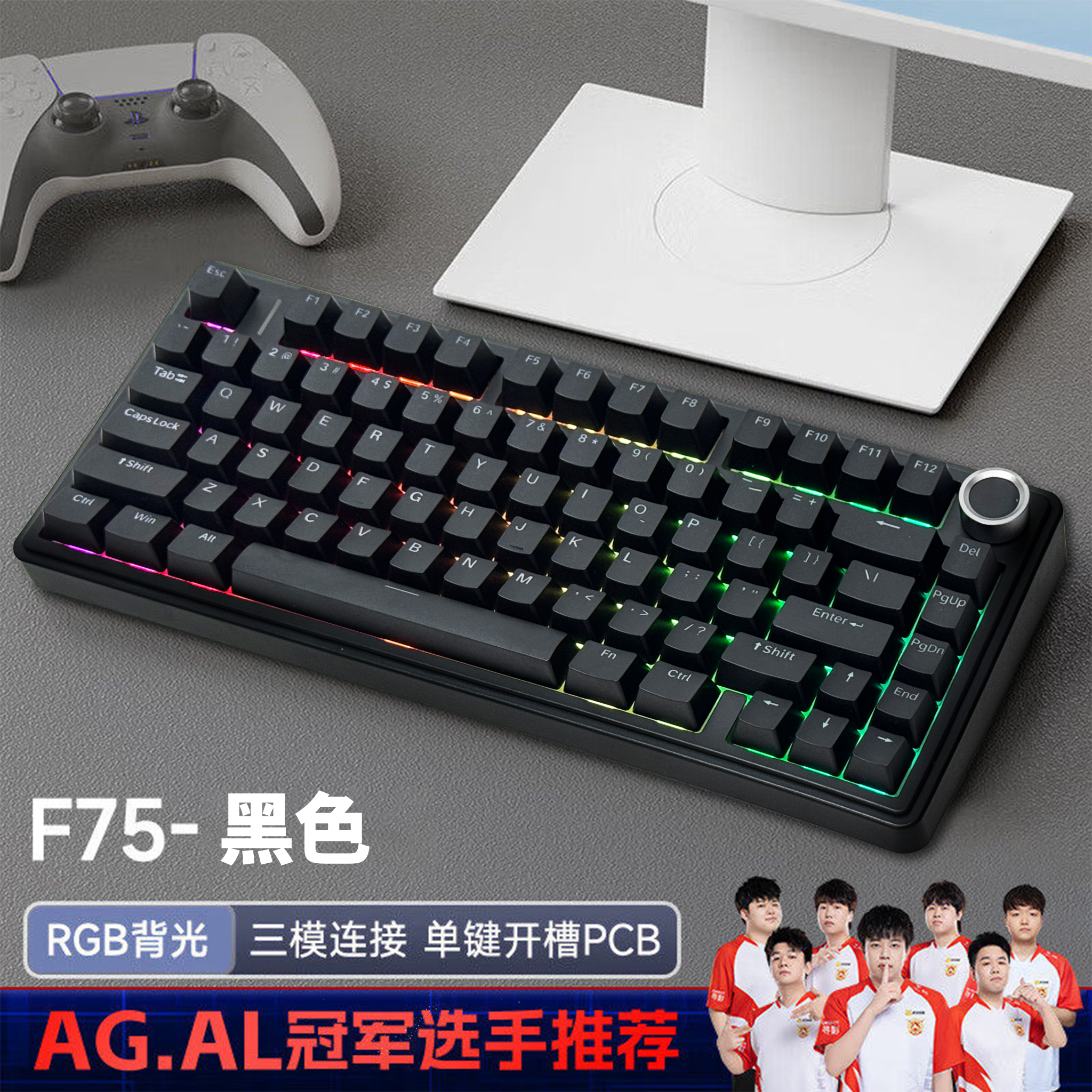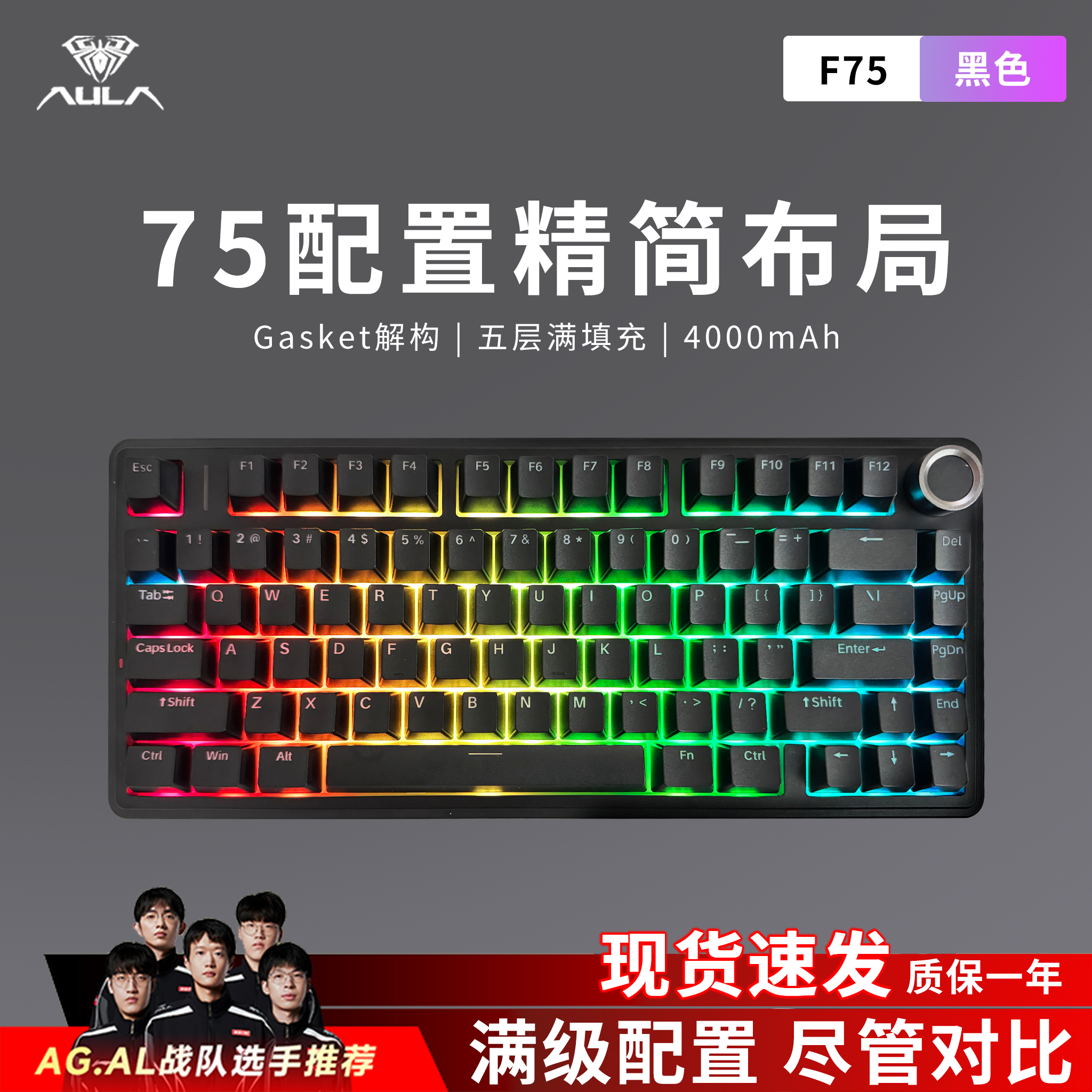 狼蛛F75pro客制化三模机械键盘无线蓝牙办公游戏电竞专用紫色键帽