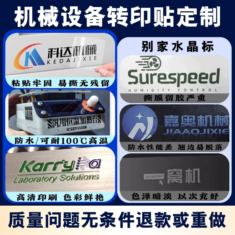 机械设备uv转印贴定制商标logo撕膜留字丝移印贴纸机床仪器按钮型号透明不干胶标签打印公司数码机器水晶标贴