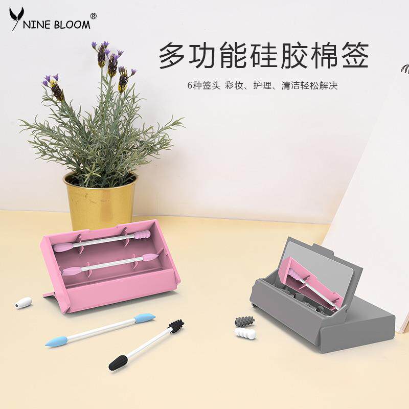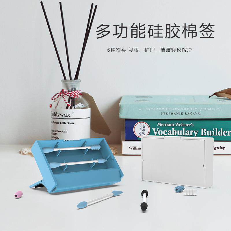 多功能循环使用硅胶棉签掏耳化妆棉棒修容眼线便携式带收纳盒镜子