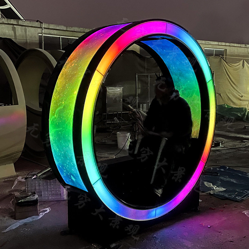 网红打卡室外互动感应发光景观美陈造型手摇划船机杠杆跑马灯圆环