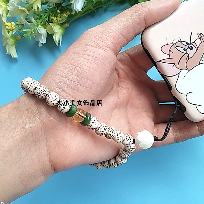 时尚手工菩提子手机链男女短款配饰手串吊坠挂饰挂件绳创意短手腕