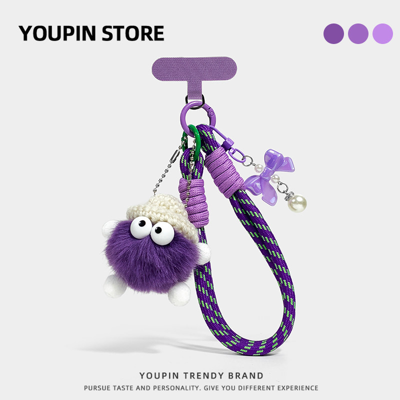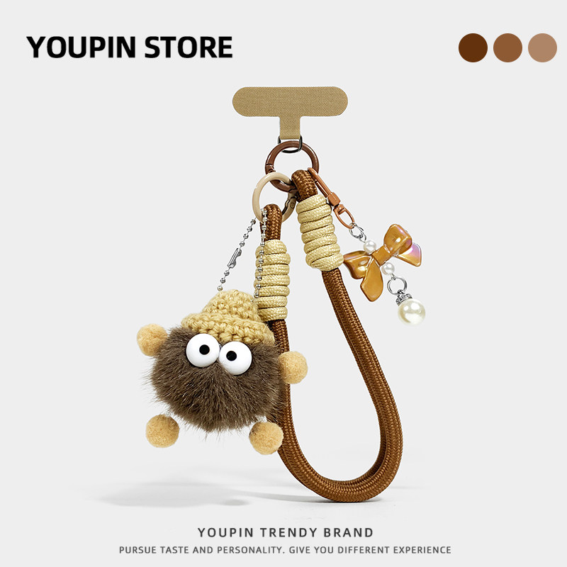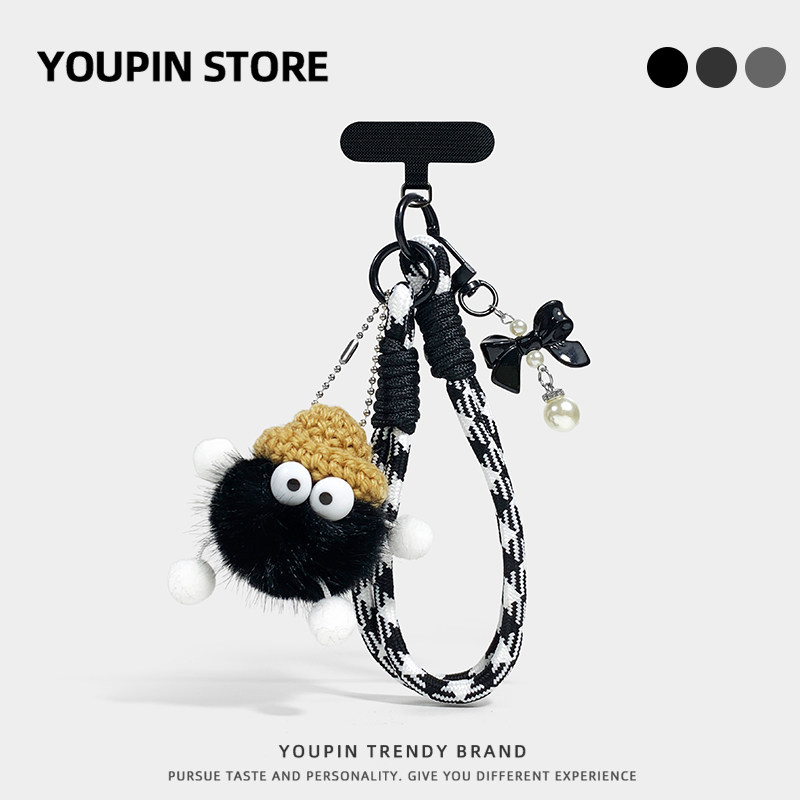 迷你卡通小煤球手机挂绳短款编织绳防丢防盗超好看配饰手机链垫片