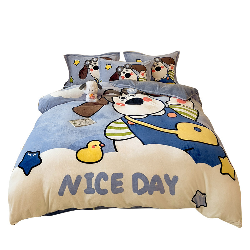 加厚卡通牛奶绒四件套可爱珊瑚法兰绒被套床单笠儿童保暖三件套冬