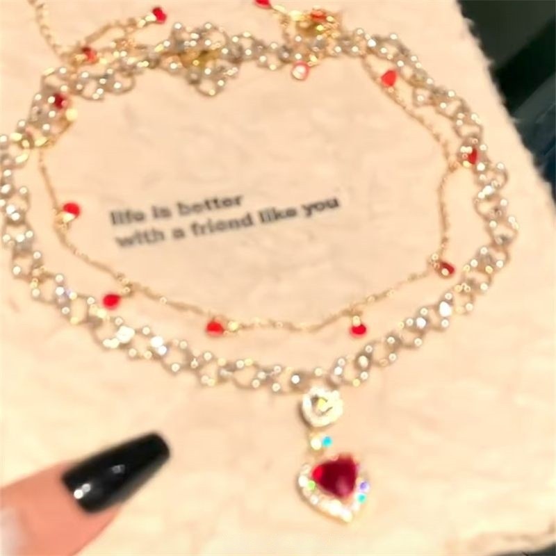 「千金」红色爱心珍珠双层项链女公主轻奢高级感宫廷风锁骨链蝴蝶