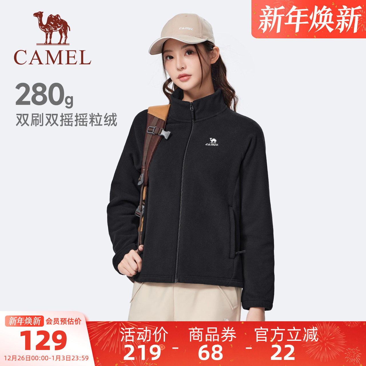 骆驼女装立领夹克2025秋冬新款百搭保暖摇粒绒抗静电开衫外套