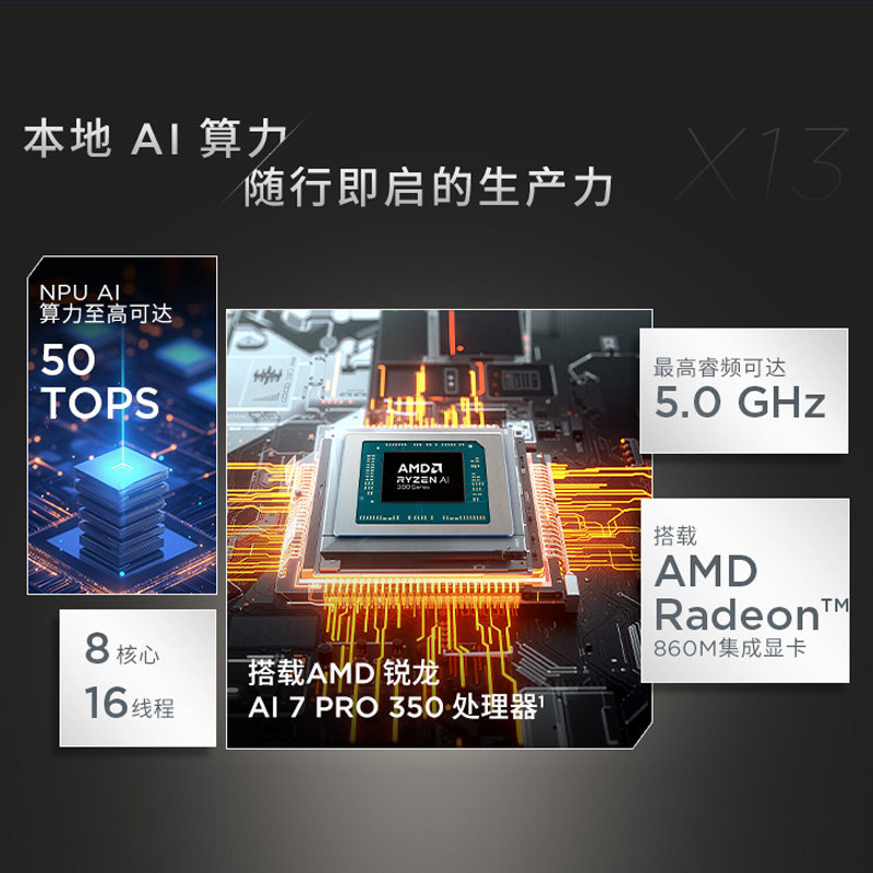 【25新款】联想ThinkPad X13 锐龙Ryzen AI 7 PRO 350 13.3英寸超轻薄便携商务办公学生笔记本电脑