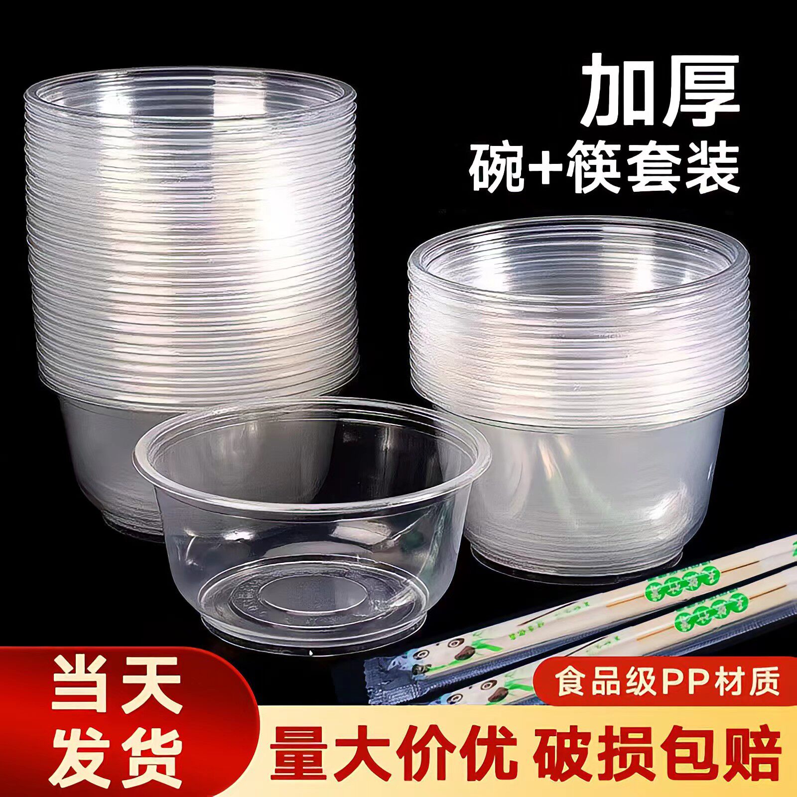 一次性碗食品级饭碗家用小碗塑料圆形碗筷套装商用餐盒饭盒打包盒