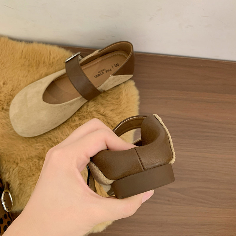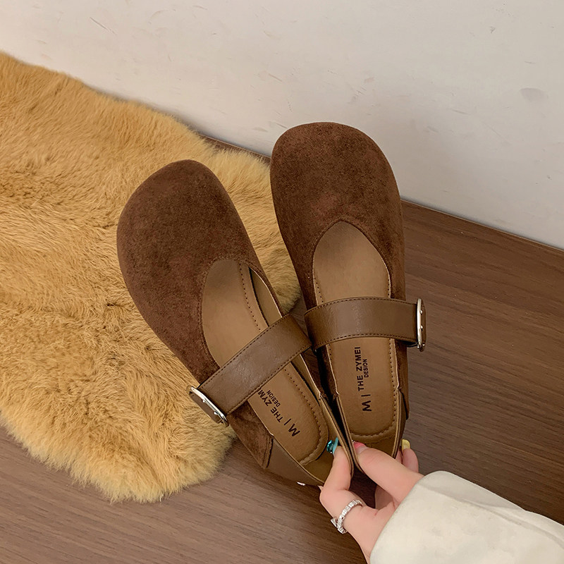 羊皮版复古玛丽珍鞋女方头秋冬季加绒保暖毛毛棉鞋平底晚晚单鞋女