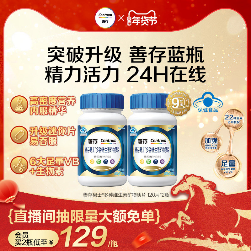 【新品】善存蓝瓶男女复合维生素b族矿物质b2b6增添活力蓝帽达人