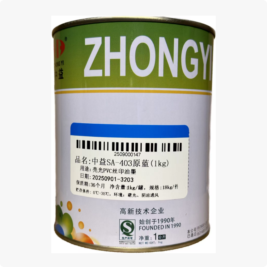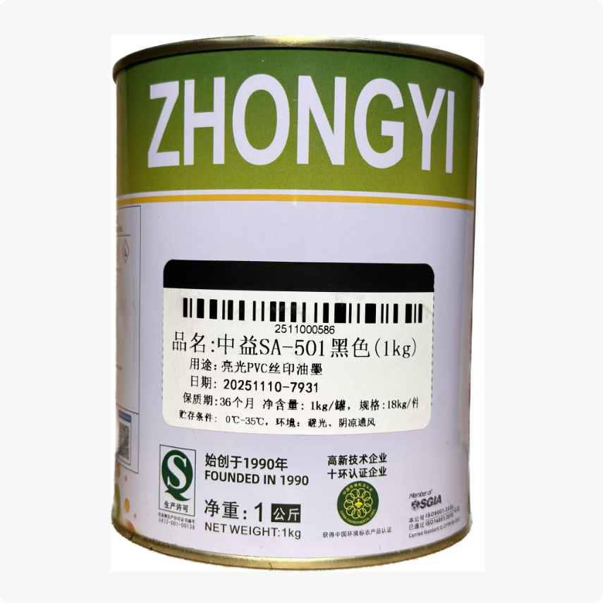 中益SA亮光丝印油墨PVC油性塑料纸张木头皮革丝网印刷制板白黑色
