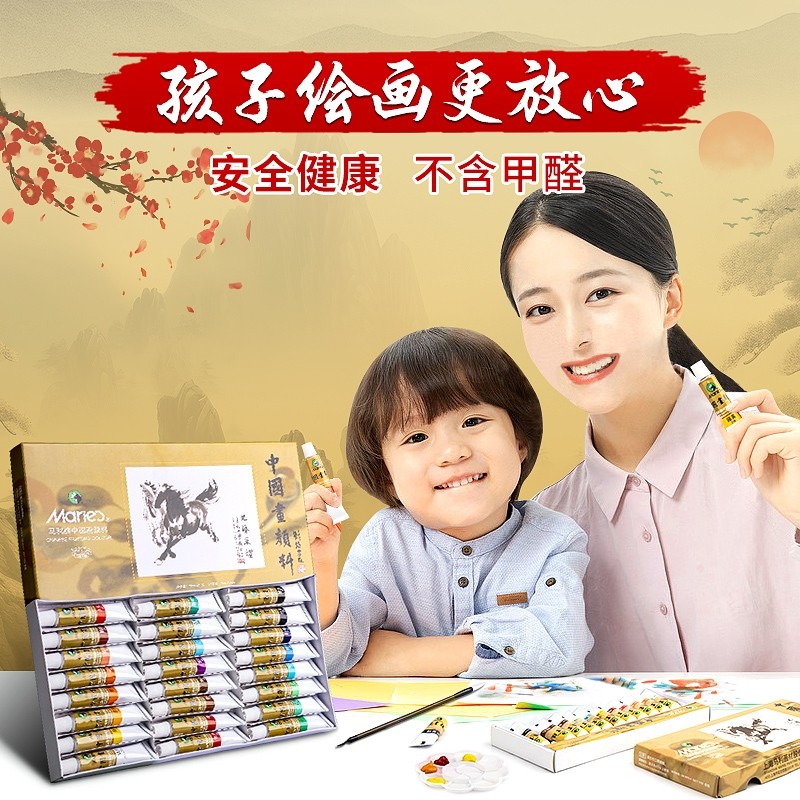 马利国画颜料中国画初学者套装马利牌水墨画用品工具玛丽32ml单支藤黄花青钛白染料12色大容量曙红24色金粉