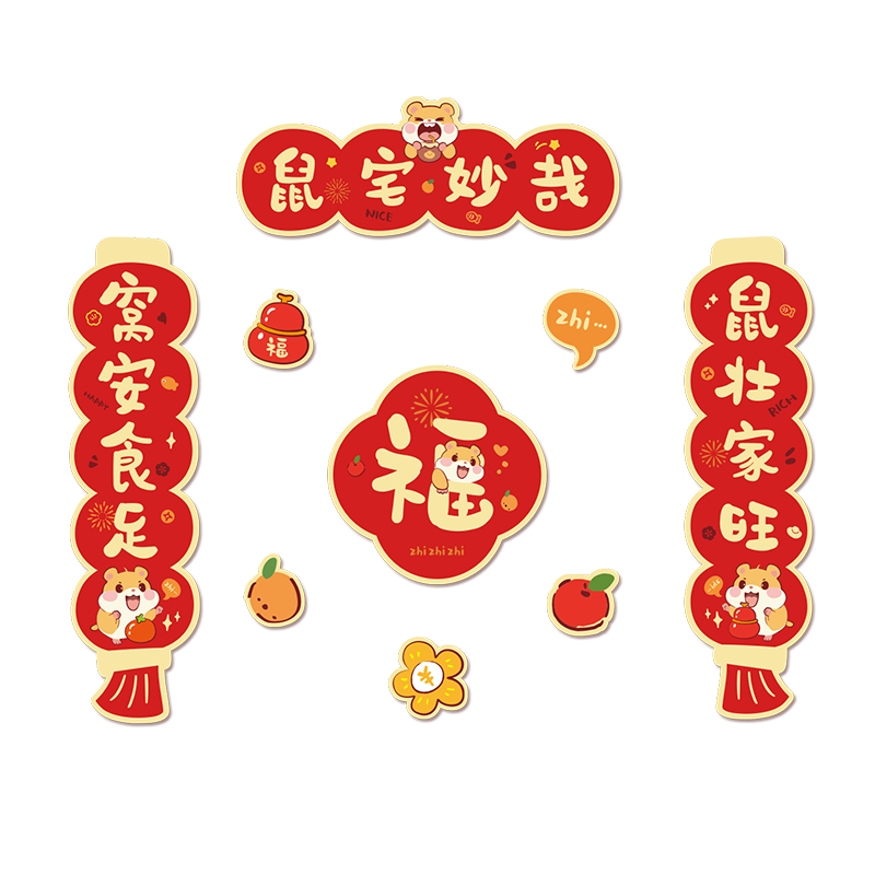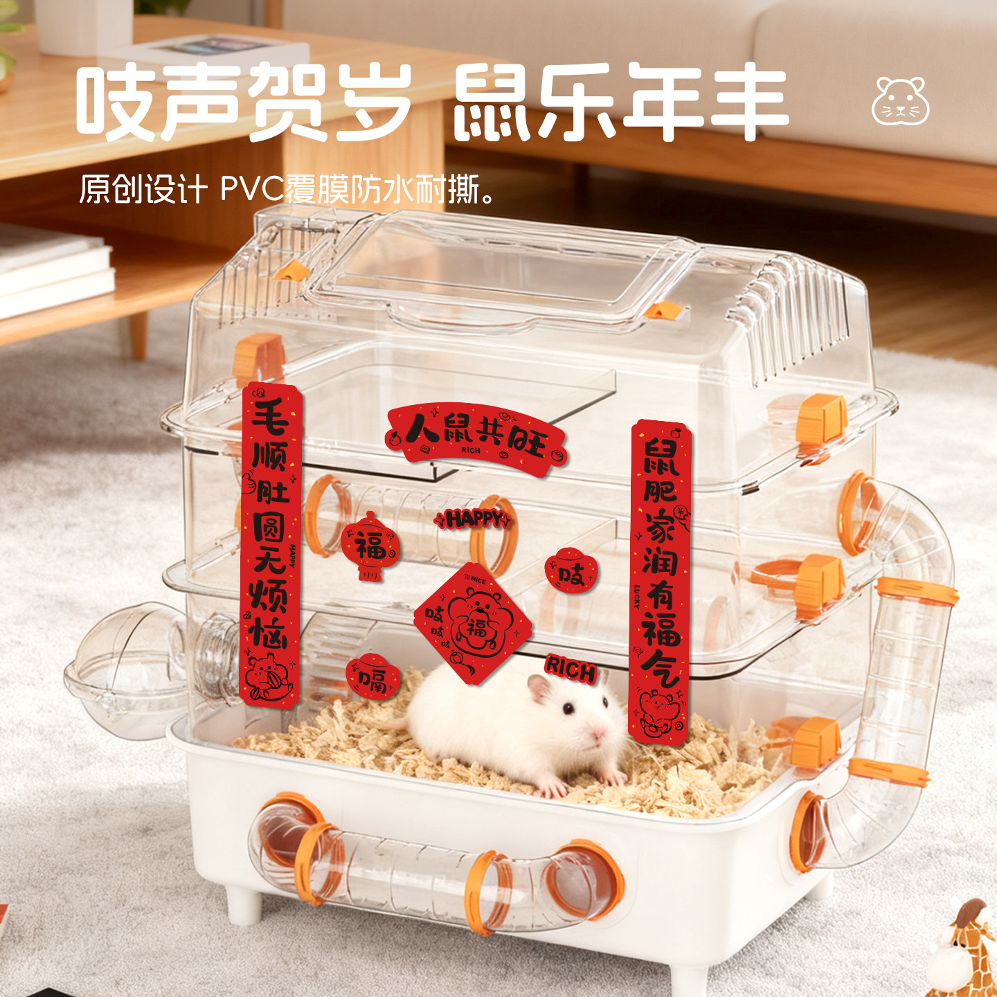 悦小萌仓鼠对联金丝熊花枝鼠春联宠物笼创意福字贴纸2026马年新款