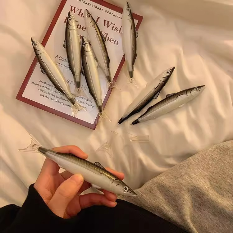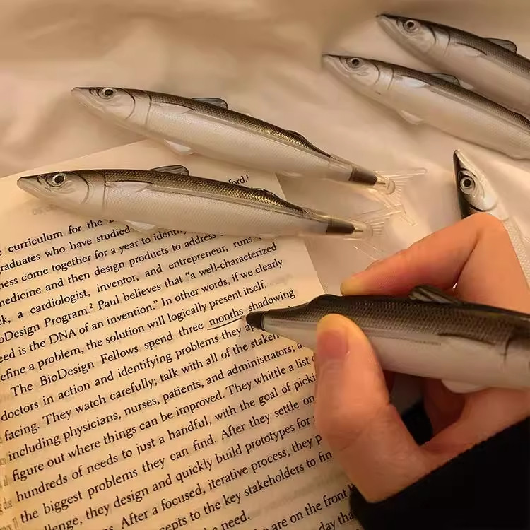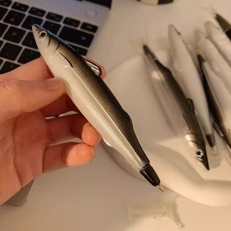 无聊了一起摸摸鱼造型笔创意学生搞怪文具圆珠笔0.5m黑仿真闲咸鱼