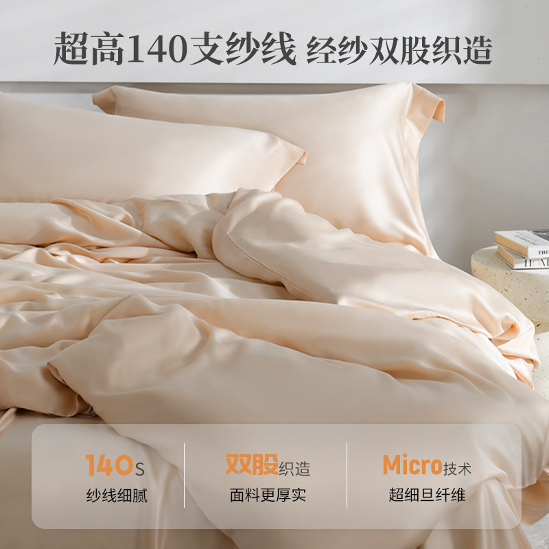 真正140支双股天丝 A类床品丝滑裸睡套件