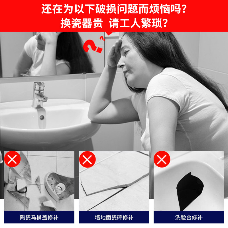 陶瓷洗脸盆裂缝修补胶水无痕釉面款强力防水粘瓷砖搪瓷洗手盆瓷器浴缸马桶蹲便器裂缝破损修复胶水透明粘合剂