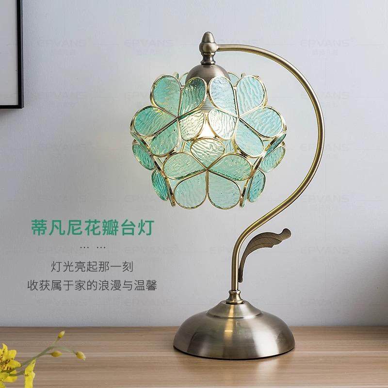 复古台灯玻璃绣球法式琉璃灯卧室轻奢床头灯氛围灯礼物高级客厅