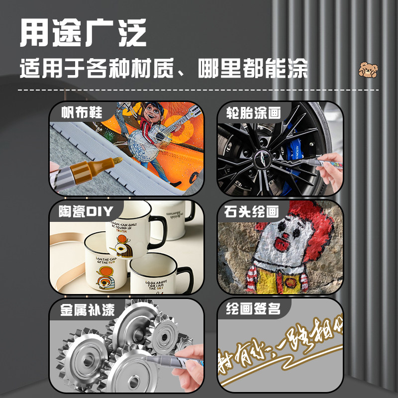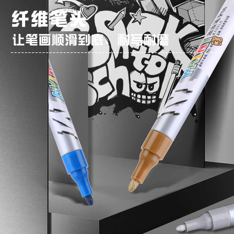 晨光油漆笔白色记号笔油性工业不掉色补漆笔防水防油轮胎笔diy金属镜框金漆笔墓碑描字黑色红色金色签到笔