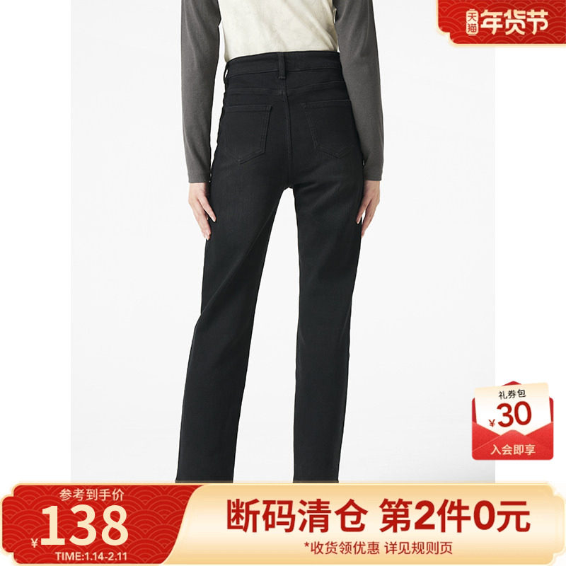 twosweet【超级裤神】四面弹重塑大长腿高腰直筒微喇叭原色牛仔裤