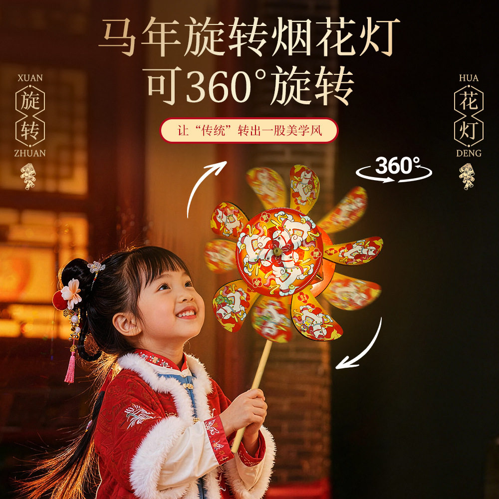 马年新年儿童手工diy转花灯笼材料旋转手提古风木质宫灯元宵非遗