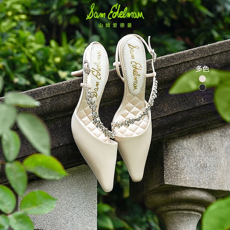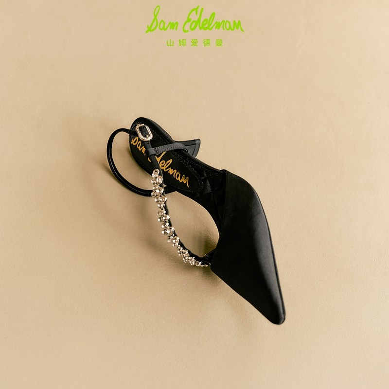 周洁琼同款SAM EDELMAN山姆爱德曼新水钻尖头黑高跟凉鞋BONNIE