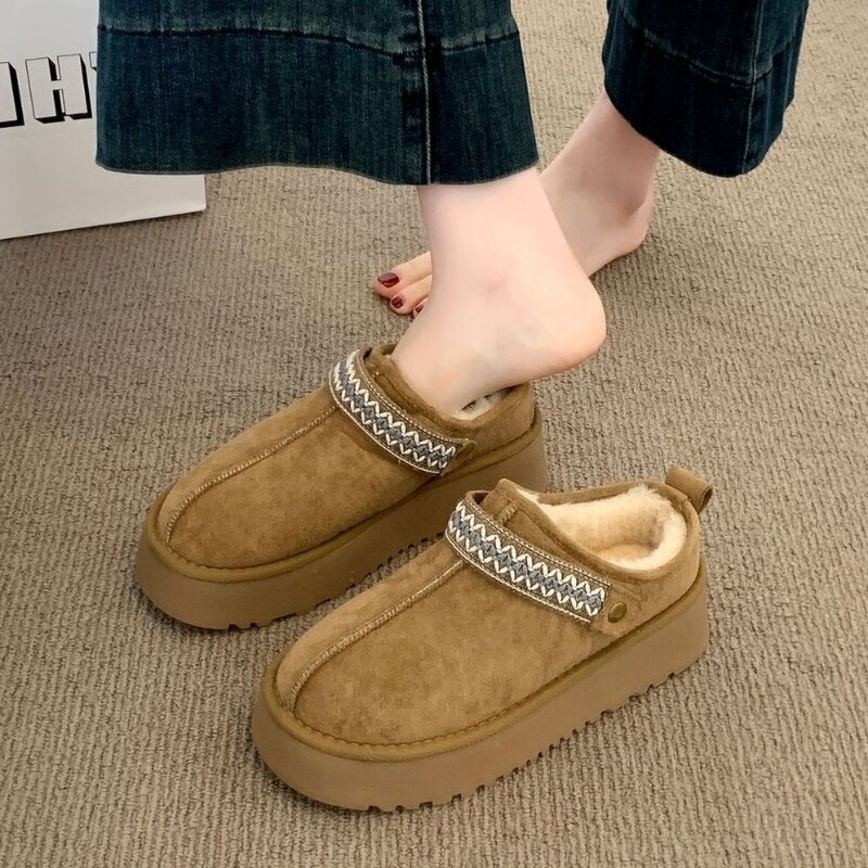 低帮厚底雪地靴女2025新款冬季懒人一脚蹬毛毛棉鞋加绒加厚女鞋子