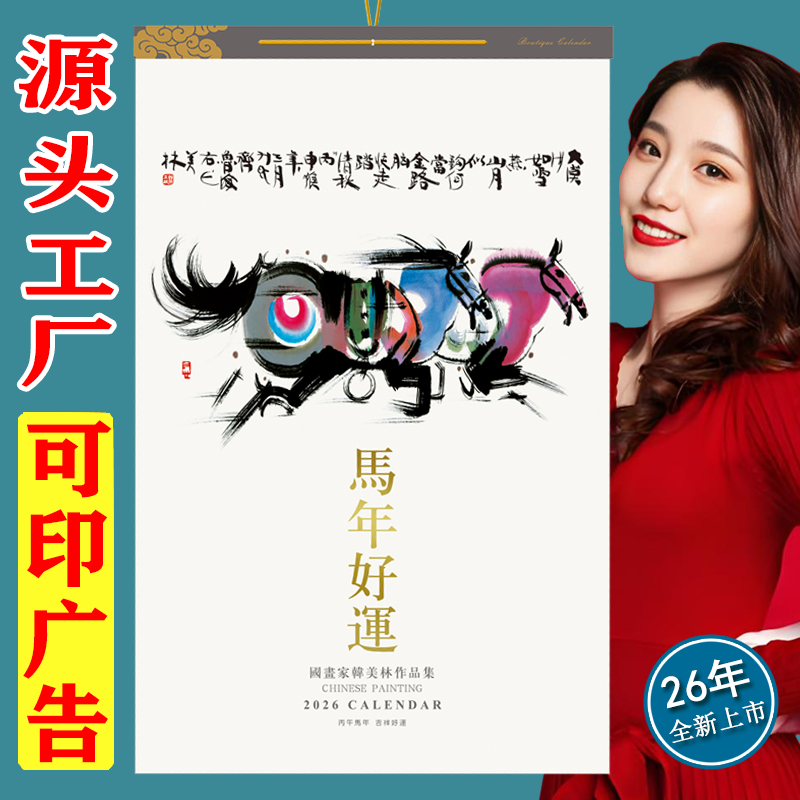 马年挂历2026年家用挂墙式定制日历新款新年企业LOGO计划中国风