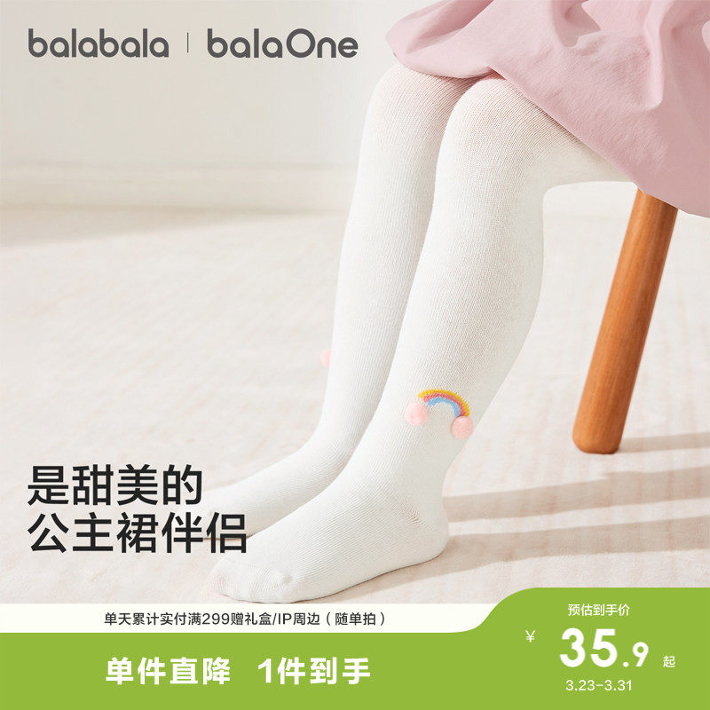 巴拉巴拉儿童连裤袜子打底裤女童舞蹈袜春季薄款弹力百搭公主甜美