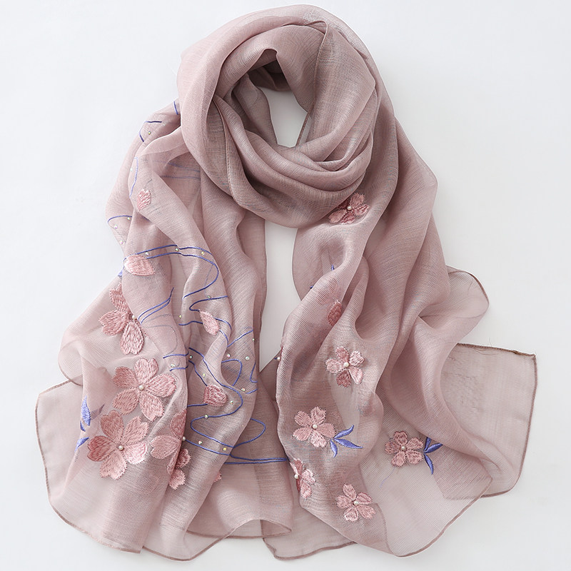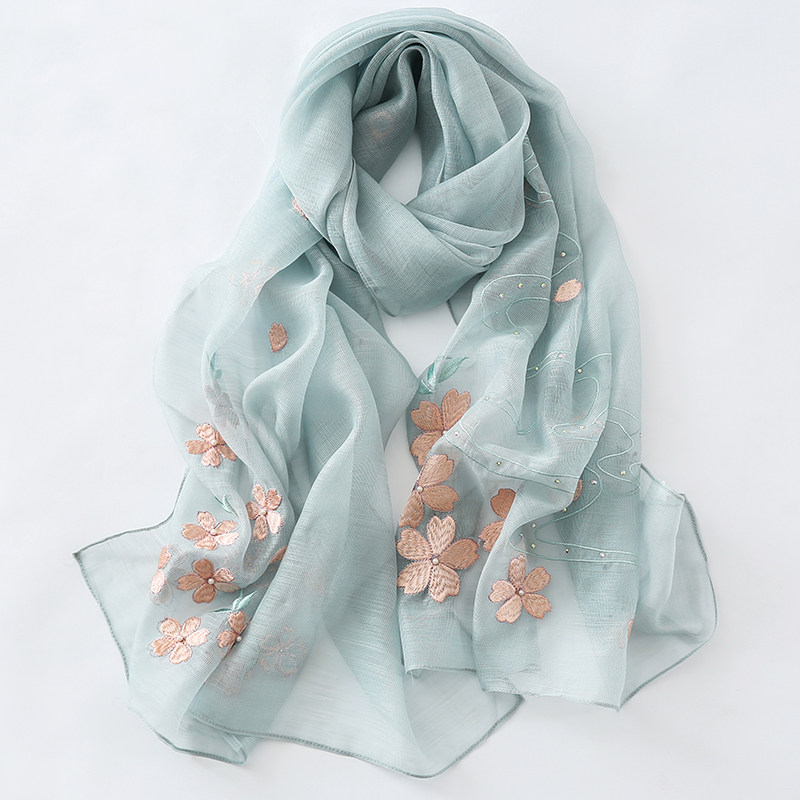 恒源祥真丝羊毛围巾女送妈妈刺绣百搭春秋季薄披肩桑蚕丝丝巾礼品